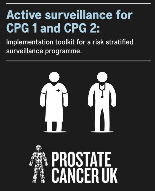 In men with Cambridge Prognostic Group (CPG) 1 or CPG2 prostate cancer, active surveillance is a recommended option for managing prostate cancer by the UK National Institute for Health Care Excellence (NICE). To read about the NICE recommendations and what CPG means, please access the East of England Cancer Alliance website and NICE Guidance Information website – links found on this page (references 1-2.)